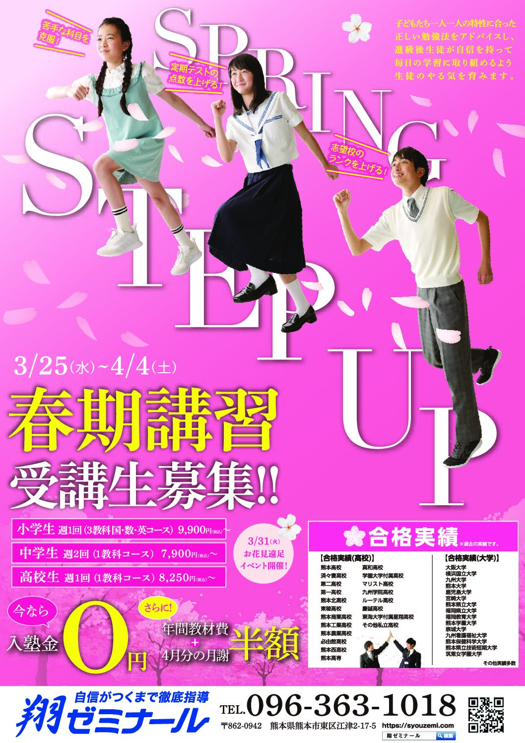 はい、欠席の連絡をいただければ振替指導を行います。 集団指導の欠席は、授業がない日のフォローアップ指導日に受けることができます。