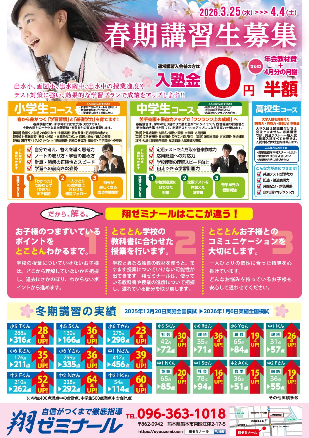 個別指導の場合、小学生は国・算・英、中学生は英・数が基本となります。ご希望に応じて他の教科(理・社・国(中学生)など)に変えたり、追加をしたりすることもできます。集団指導の場合、5教科受講が基本になります。